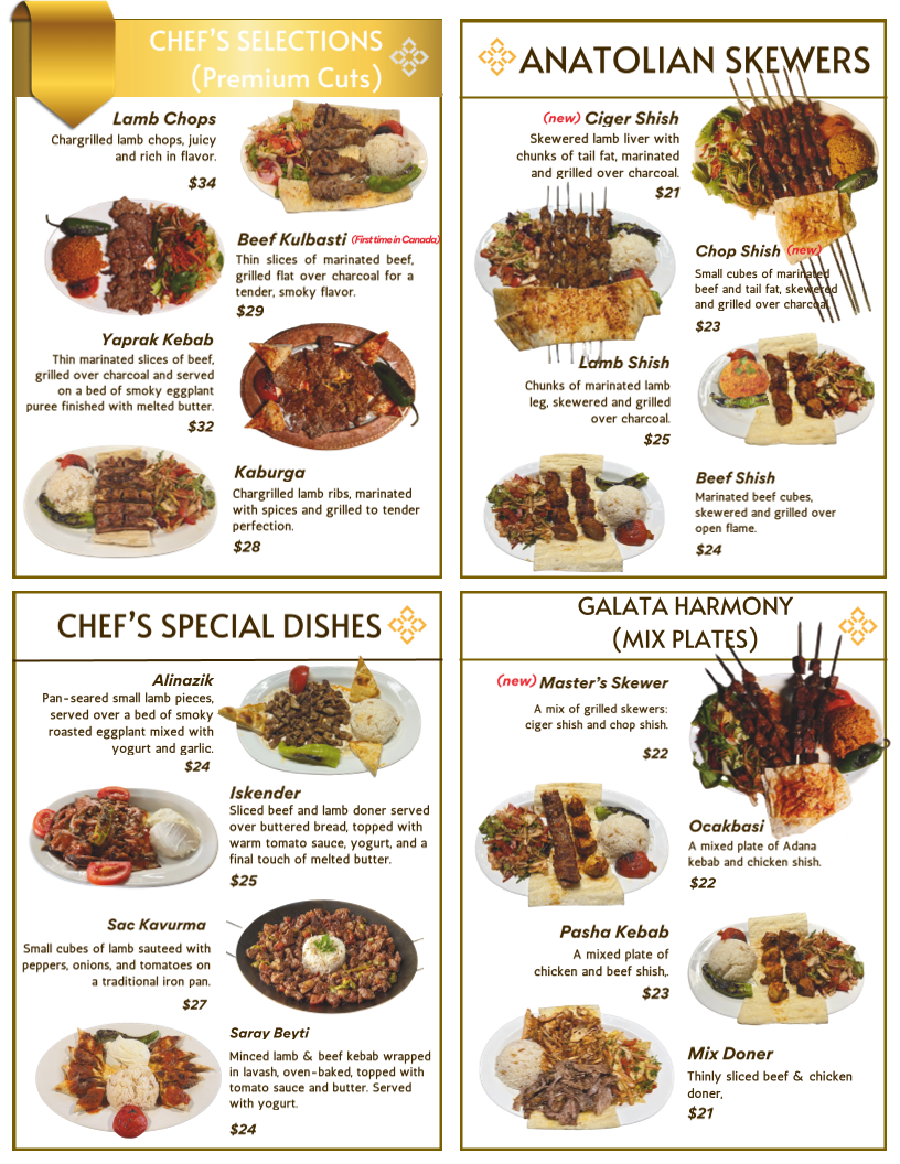 At Galata Türkish Restaurant, the essence of Turkish cuisine comes alive through a diverse and tantalizing menu. Located at 940 Danforth Ave in Toronto, this culinary gem offers an array of dishes that highlight its rich traditions.